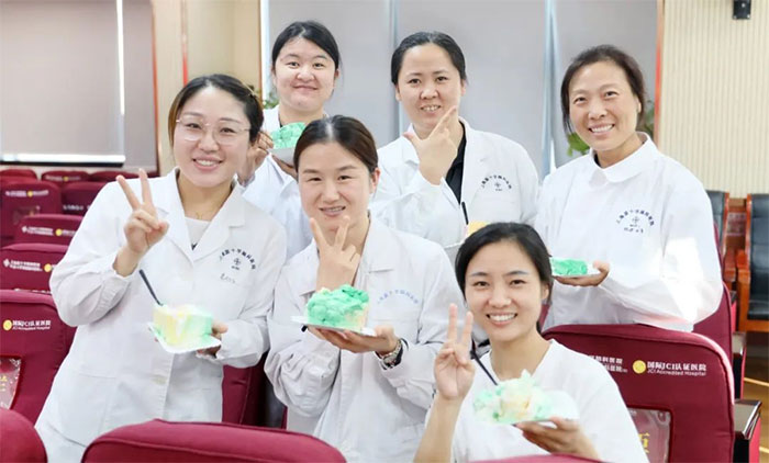 最后,朱敏总经理、项耀钧院长为医师们送上专门定制的“中国医师节快乐”大蛋糕。蜡烛燃起,香甜弥漫开来,那是温暖与感动的滋味,不仅承载着真挚的节日祝福,还体现着蓝十字大家庭的浓浓关爱。
