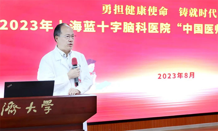 一颗仁心敬日月,不枉白衣天使名!为庆祝第六个中国医师节,激励全院医务人员继续弘扬“敬佑生命、救死扶伤、甘于奉献、大爱无疆”的崇高职业精神,8月18日下午,上海蓝十字脑科医院举办了2023年中国医师节庆祝表彰大会。总经理兼书记朱敏、院长项耀钧等院领导班子全体成员,各职能部门负责人、临床科室主任、护士长、非当值医生及受表彰人员等参加会议。大会由副院长潘耀良主持。
