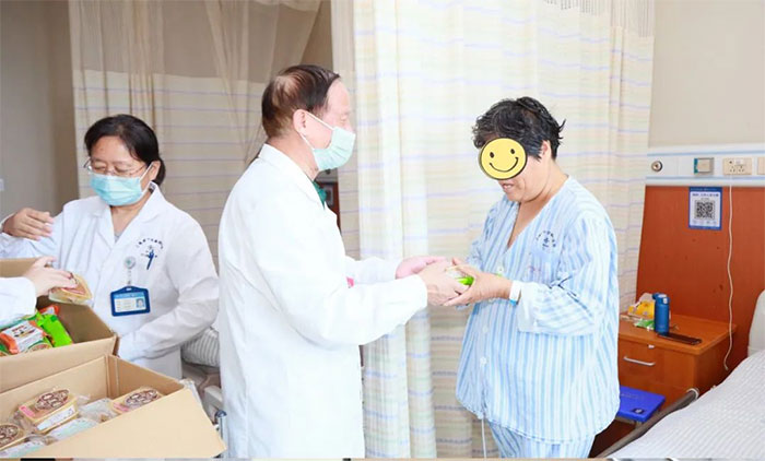 患者钱爷爷今年67岁,是一位胃癌的患者,来上海蓝十字脑科医院康复治疗一段时间,病情明显好转。看到胡主任一行过来慰问,钱爷爷拉着胡主任的手激动的说:“谢谢您,谢谢您,在您的治疗下,我的病情好多了,过节了你们还惦记着我们,你们真是太好了!”
