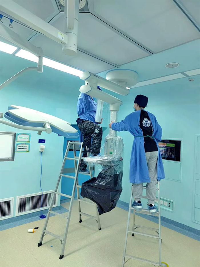 国庆假期,在医院的各个场所总能看到一群忙碌的身影,他们身着蓝色工作服,携带专业工具,穿梭在医院的各个角落。检查设施、排查故障、维修设备、墙体补漆、工程监管及实施改造......哪里需要哪里就有他们的身影。