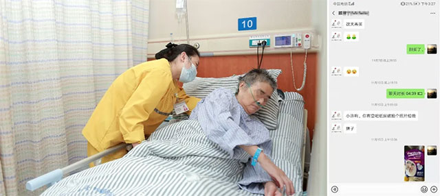 ▲ 像亲人一样照顾患者,经常与家属视频沟通