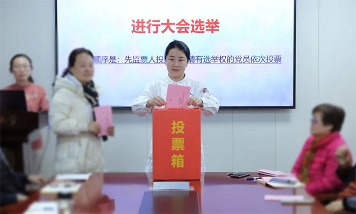 大会严格按照《中国共产党章程》和《中国共产党基层组织选举工作条例》等有关规定,通过了监票人、计票人名单,根据《上海蓝十字脑科医院党支部党员大会选举办法(草案)》,采用差额选举、无记名投票的方式产生了新一届党支部委员会委员,朱敏、赵宇兰、胡玉堂、罗佳、李兰馨5名同志当选为医院新一届党支部委员。
