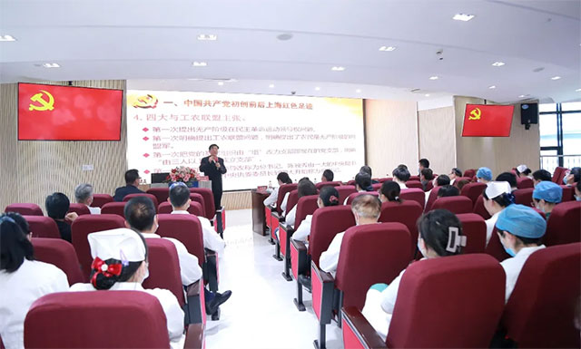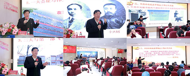 张长东教授以“传承红色基因,牢记初心使命——追寻中国共产党早期上海红色足迹”为主题进行了党史授课。张教授的演讲主要分四个部分:中国共产党初创前后上海红色足迹;中共中央早期机关在上海足迹;革命老一辈的上海红色史迹;中共中央上海局斗争历程。