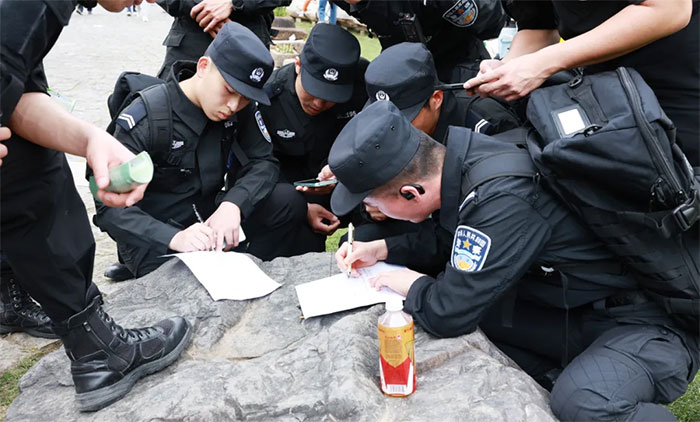 ▲ 拉练开始前,特警青年和蓝十字医疗保障队现场集结