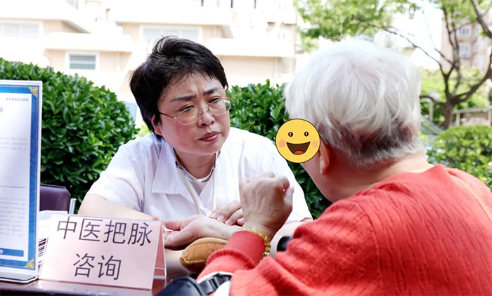 ▲ 李晶华主任认真把脉,聆听居民健康状况