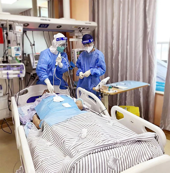 这一刻,“隔离病区”、“疑似病例”,于他而言已经毫无威慑力。心中唯一念及的,只是如何尽好医务人员的职责。因为有不少转入临时隔离病区的患者,原本病情就比较危重,病因复杂多变,救治难度大。