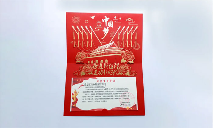 过“政治生日”是对初心使命的重温。正如贺卡扉页上赫然写着的“共筑中国梦——奋进新征程,建功新时代”,及礼盒上的“复兴”两字,虽然只有短短十七个字,但却让人热血沸腾。上海蓝十字脑科医院党支部将不断提高政治站位,充分发挥战斗堡垒作用,在习近平新时代中国特色社会主义思想和党的二十大精神的指引下,积极担负起提升民生健康的使命,为提升人民健康水平助力,为建设健康中国助力,相信实现“两个一百年”奋斗目标、实现中华民族伟大复兴的中国梦必将早日实现!