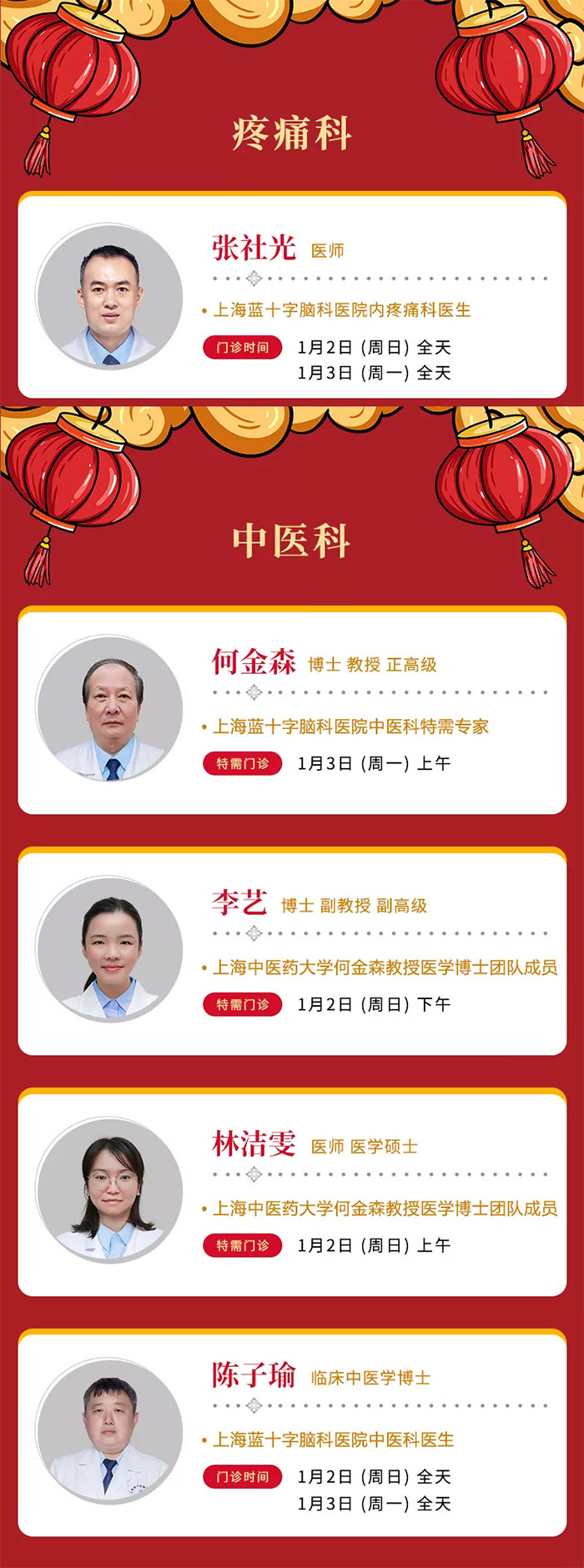 温馨提醒:因假期就诊人数较多,建议您关注上海蓝十字脑科医院微信公众号、或提前拨打预约电话(021-64879999)预约,以节约排队就诊时间。