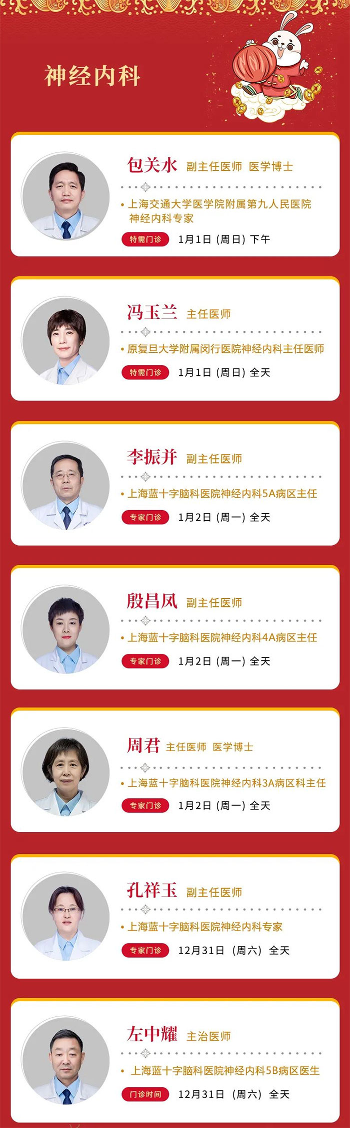 四、因假期就诊人数较多,建议您关注上海蓝十字脑科医院微信公众号、或提前拨打预约电话(021-64879999)预约,错峰就诊。