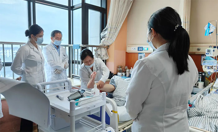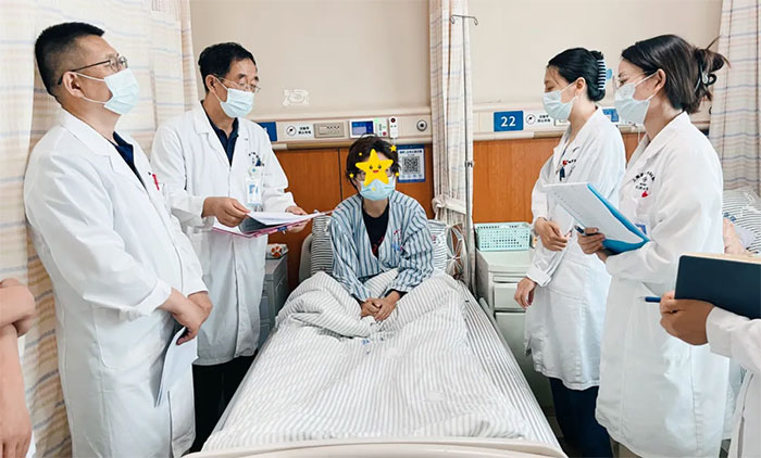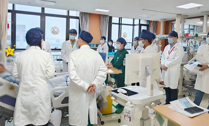 而在10楼综合内科病区,科主任许培培正带领团队对一位“意识不清伴发热3月余”的疑难患者进行查房,并对其病情和治疗方案开展更全面的分析与评估。