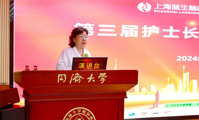 蓝生脑科副总裁叶文琴、医疗管理部护理培训主任唐秀花、医疗管理部护理总监兼上海蓝十字脑科医院护理教研室主任周咏梅等莅临现场。蓝生脑科旗下上海市内四家医院护理部主任、护士长及护理骨干现场听课,苏州、慈溪、四川、深圳等医院护士长和骨干线上学习,共200余人参加。蓝生脑科医疗管理部特聘专家朱建英主持活动。