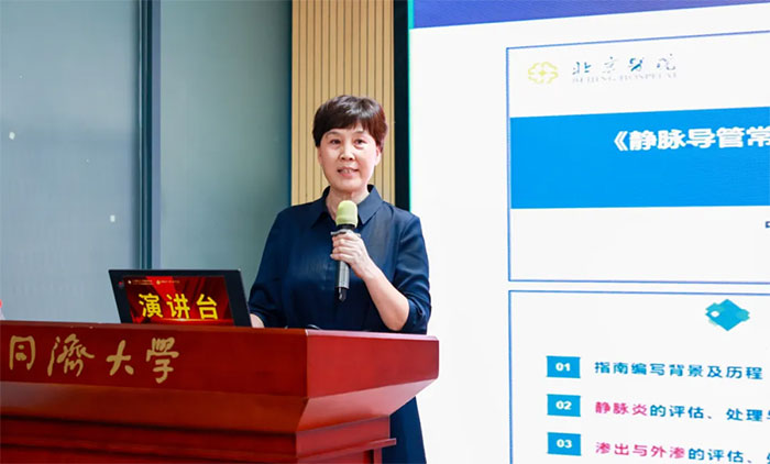 “为什么?怎么办?如何预防?”针对中心静脉通路常见高风险并发症,钱火红总护士长通过层层设疑,以“问题导引”驱动“深度思维”,将并发症产生的原因、处理和预防措施娓娓道述。她从循证医学出发,结合自身临床体会及案例分享,向大家深入浅出地讲授了临床中心静脉通路工作的独到经验和思考。