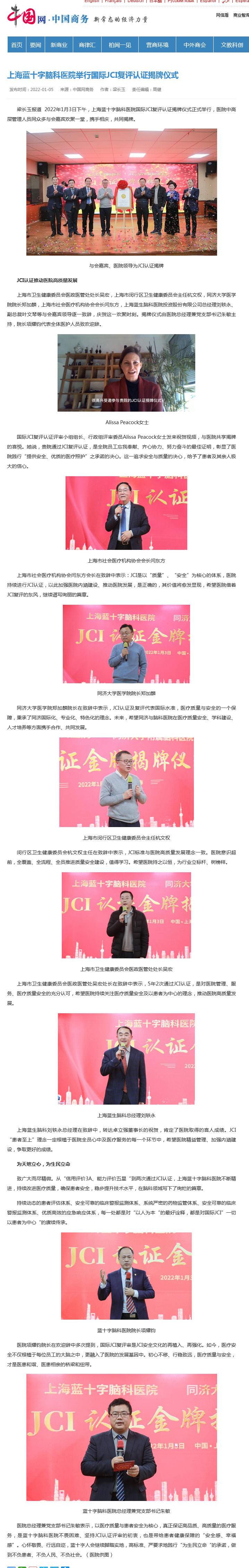 梁长玉报道 2022年1月3日下午,上海蓝十字脑科医院国际JCI复评认证揭牌仪式正式举行,医院中高层管理人员同众多与会嘉宾欢聚一堂,携手相庆,共同揭牌。