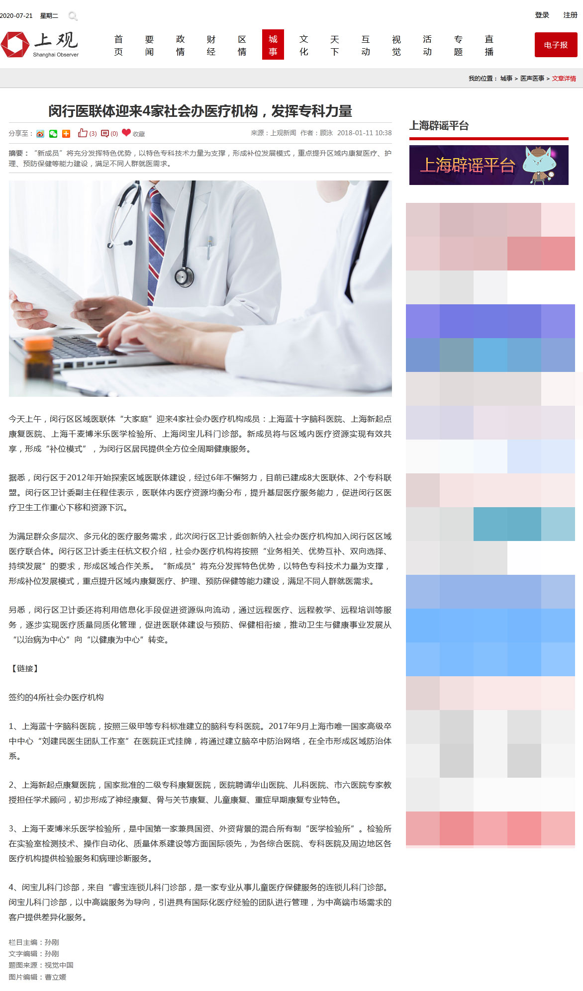 上一篇:视听闵行 | 闵行医联体注入社会办医“新能量”!分级诊疗、双向转诊在这四家医疗机构也可以! 下一篇:中国网 | 上海把社会办医疗机构纳入医联体 蓝十字脑科医院进入闵行医联