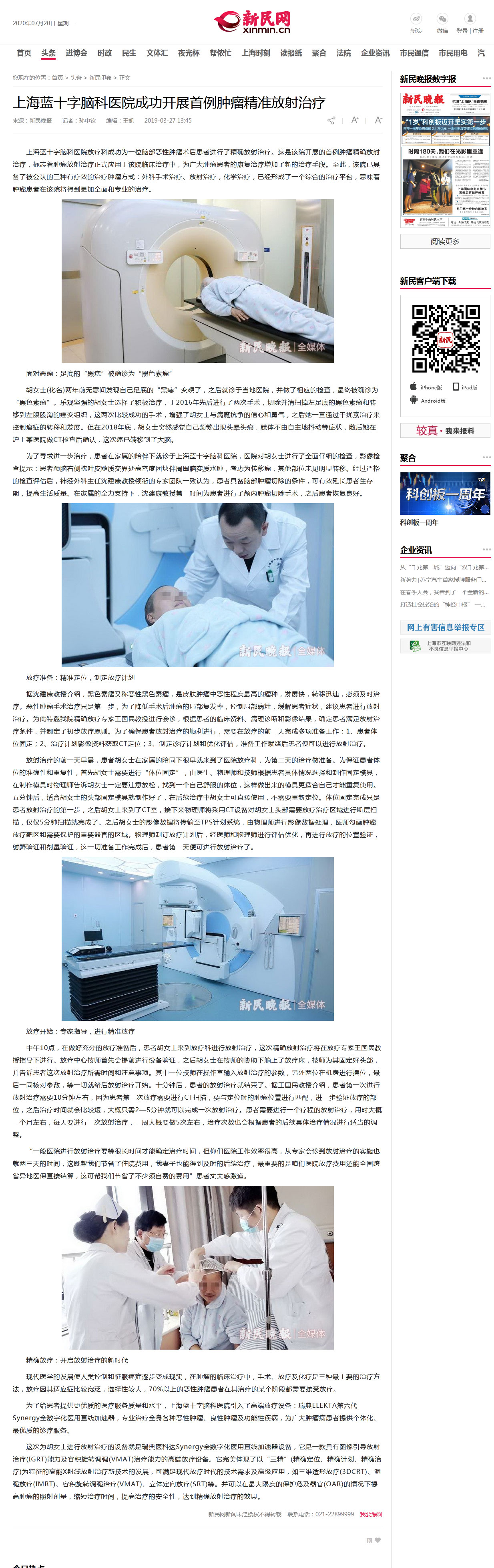 上海蓝十字脑科医院放疗科成功为一位脑部恶性肿瘤术后患者进行了精准放射治疗。这是该院开展的首例肿瘤精准放射治疗,标志着肿瘤放射治疗正式应用于该院临床治疗中,为广大肿瘤患者的康复治疗增加了新的治疗手段。至此,该院已具备了被公认的三种有疗效的治疗肿瘤方式:外科手术治疗、放射治疗,化学治疗,已经形成了一个综合的治疗平台,意味着肿瘤患者在该院将得到更加全面和专业的治疗。