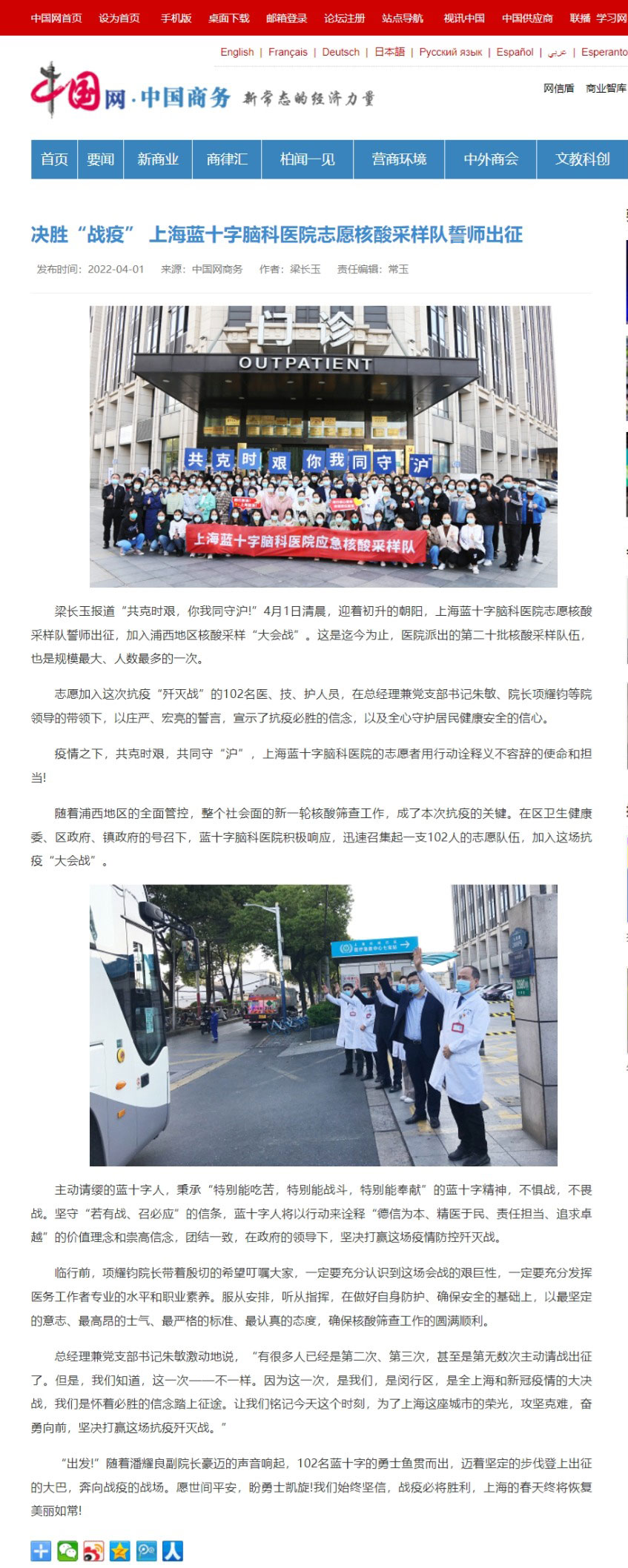 原文来源:中国网商务|在北京时间2022年4月2日 8:30:00的网页快照。上一篇:中国网商务 | 战疫|上海蓝十字脑科医院核酸采样队连日出征 下一篇:中新网上海 | 上海蓝十字脑科医院志愿核酸采样队出征