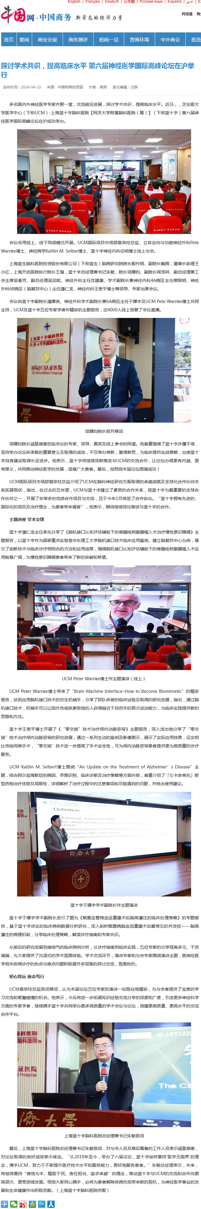 多名国内外神经医学专家齐聚一堂,交流前沿进展,探讨学术共识,提高临床水平。近日,,芝加哥大学医学中心(下称UCM)-上海蓝十字脑科医院(下称蓝十字)第六届神经医学国际高峰论坛在沪成功举办。