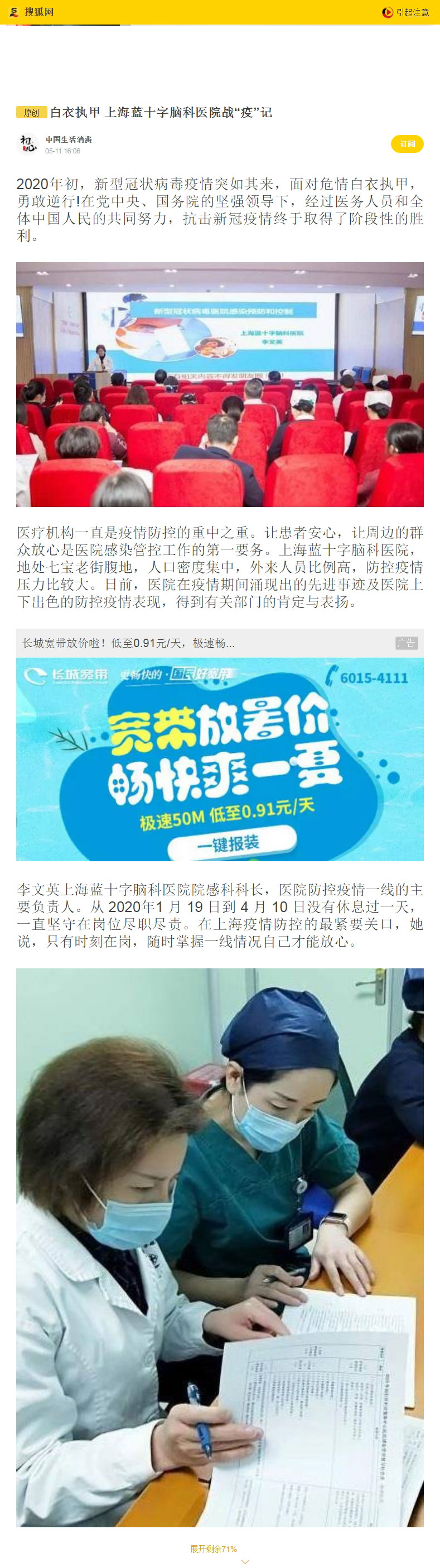 白衣执甲!上海蓝十字脑科医院用自己的行动在这次全民战“疫”中交出自己的答卷,这是一份患者安心,群众放心的答卷!