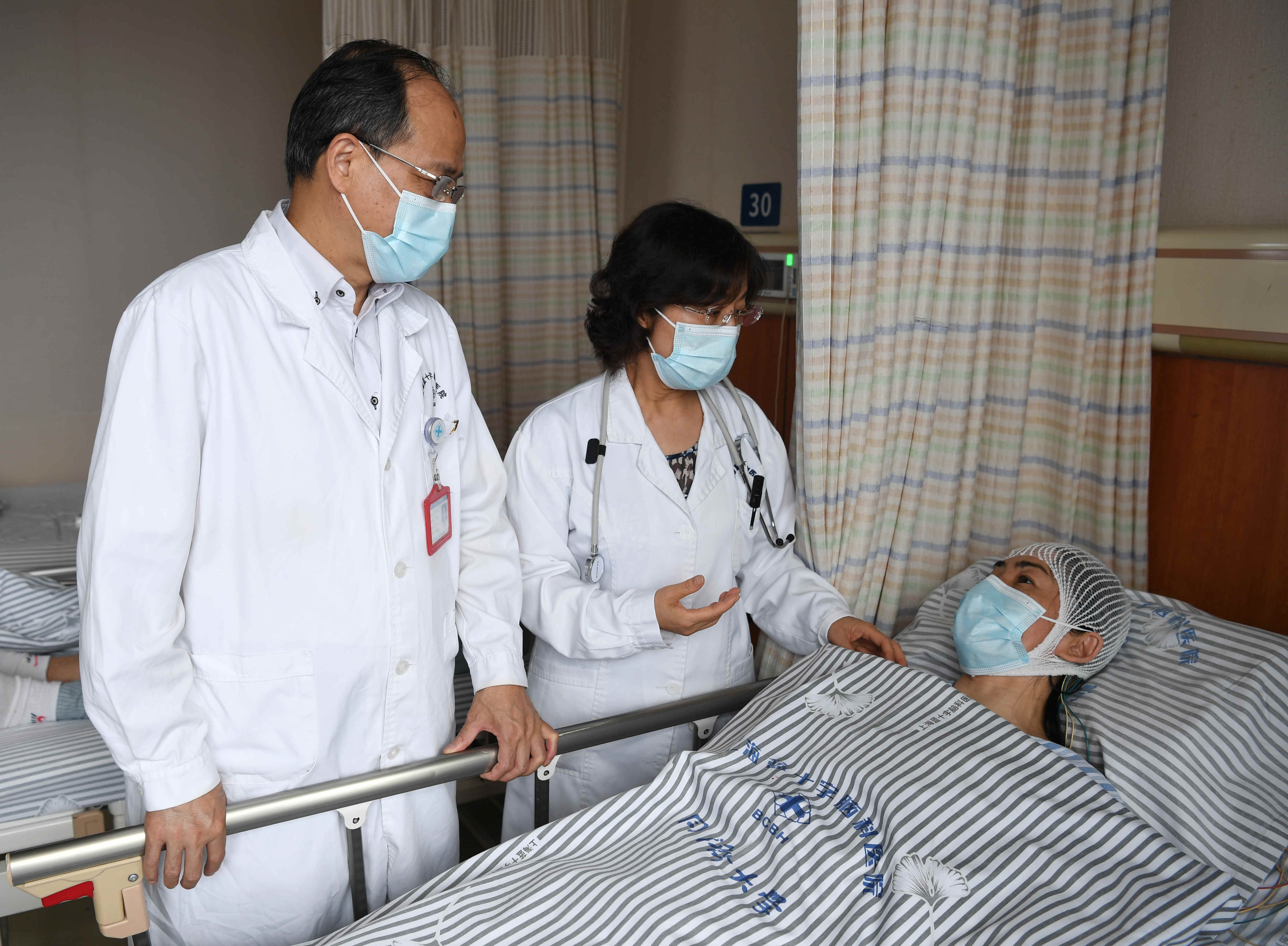 神经内科主任张静波带领其临床医疗团队给病人作检查