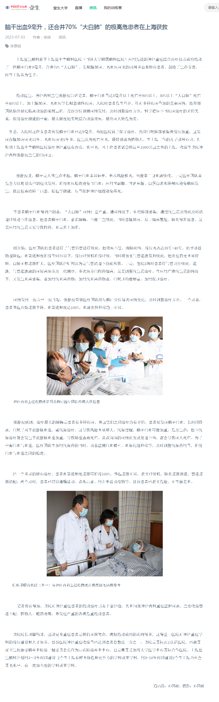 上一篇:文汇报 | 脑干出血9毫升、曾被判定最好结局是植物人……她在上海苏醒了 下一篇:劳动报 | 上海一脑干出血9毫升的极高危患者获救