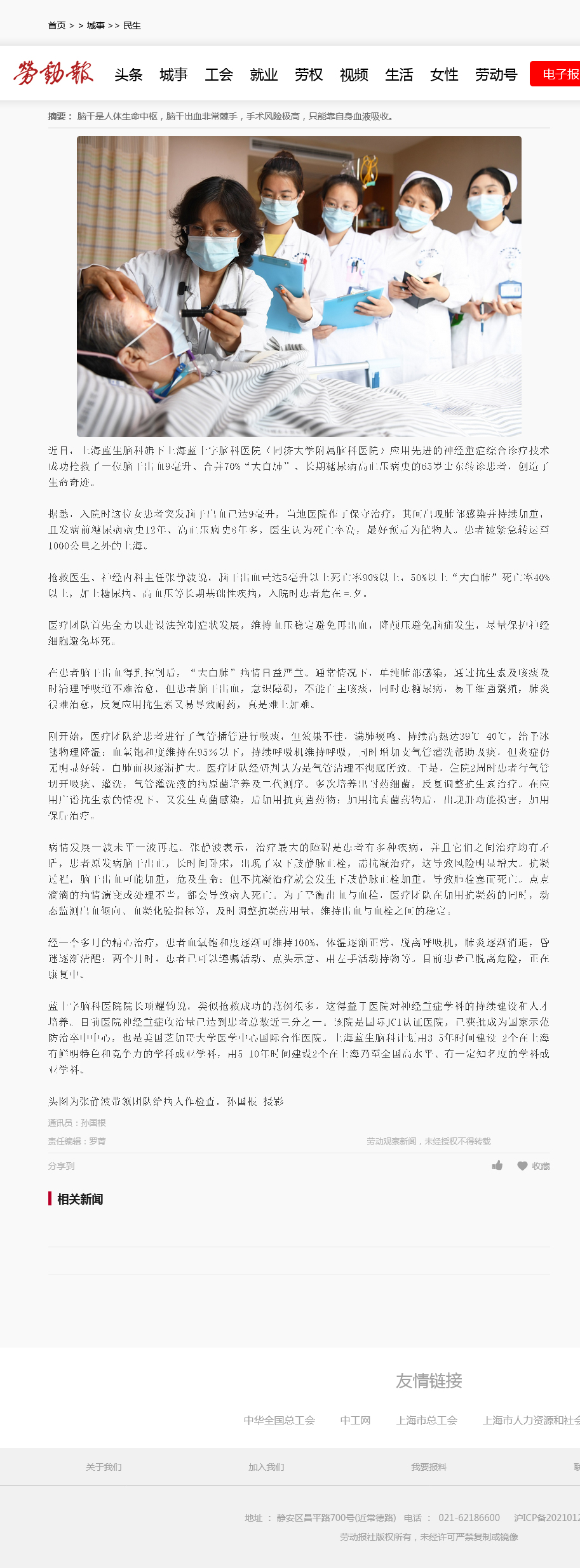 抢救医生、神经内科主任张静波说,脑干出血量达5毫升以上死亡率90%以上,50%以上“大白肺”死亡率40%以上,加上糖尿病、高血压等长期基础性疾病,入院时患者危在旦夕。