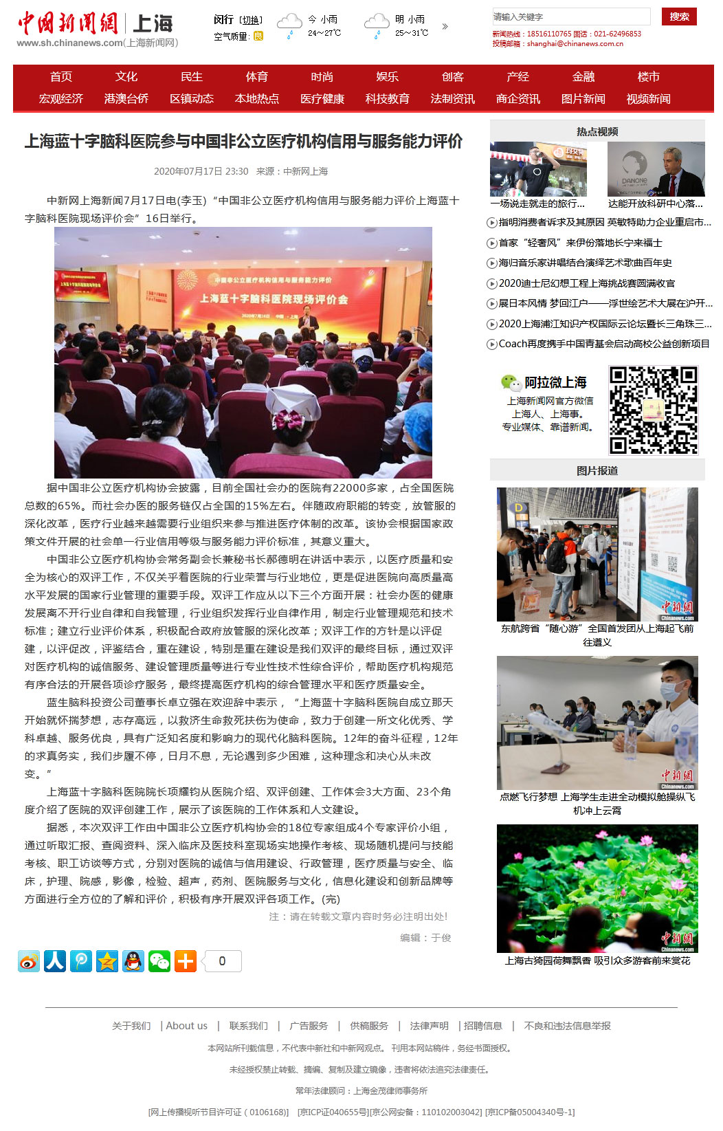 中新网上海新闻7月17日电(李玉)“中国非公立医疗机构信用与服务能力评价上海蓝十字脑科医院现场评价会”16日举行。