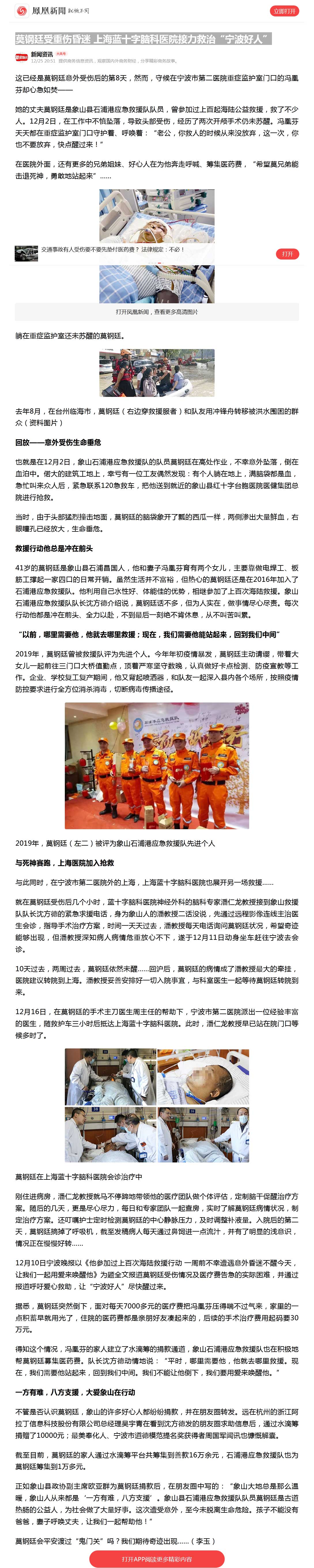 12月10日宁波晚报以《他参加过上百次海陆救援行动 一周前不幸遭遇意外昏迷不醒今天,让我们一起用爱来唤醒他》为题全文报道莫钢廷受伤情况及医疗费告急的实际困难,并通过报道呼吁爱心救助,让“宁波好人”尽快醒过来。