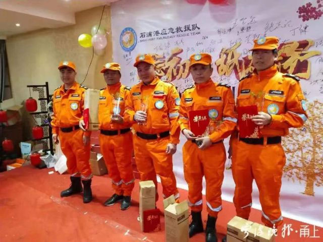 2019年,莫钢廷(左二)被评为象山石浦港应急救援队先进个人