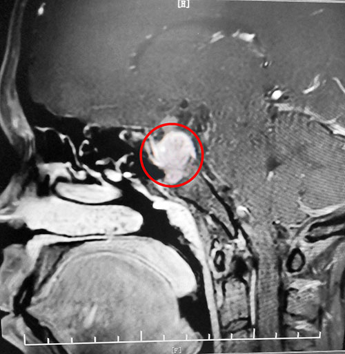 ▲影像检查显示:垂体大腺瘤,超蝶鞍生长