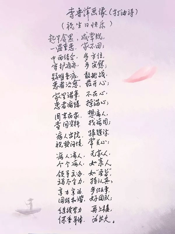 在李鲁萍看来,“亏欠”自己还是小事,她更在意的,是对家人的“亏欠”——因为忙于工作,女儿手术住院,她无暇照顾陪伴;不善家务的丈夫,硬生生练成了“十项全能”……今年5月20日,是“网络情人节”,也是李鲁萍68岁生日。为抢救一位刚入院的脓毒血症危重病人,她一直忙到晚上8点才离开医院,与老伴共同庆祝生日的计划自然“泡了汤”。不过,丈夫霍志魁出乎意料的送上了一首打油诗《李鲁萍画像》作为生日礼物,让李鲁萍非常感动。