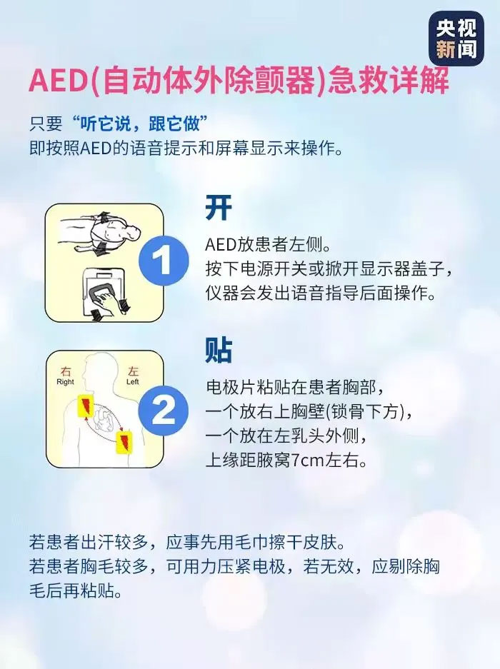 齐洪阁主任指出,如果身边有突然晕厥的人,首先应判断其是否为心跳停止。当确认患者为心跳停止导致的晕厥后,应迅速拨打120急救电话,同时寻求周围的人帮忙拿来附近的AED;在AED到来之前,不要间断进行CPR。AED到来后,根据声音提示使用AED,并等待急救车到来。