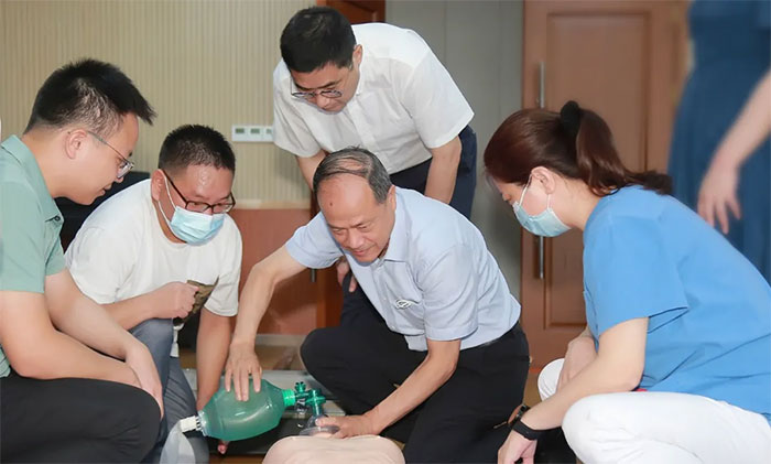 “德信为本,精医于民,责任担当,追求卓越”。2021年第四个中国医师节,在医院举办的心肺复苏技能大赛上,院领导高度重视,身体力行,身先士卒,在全院掀起了 “人人培训学习、个个考核通过心肺复苏急救技能” 的热潮。