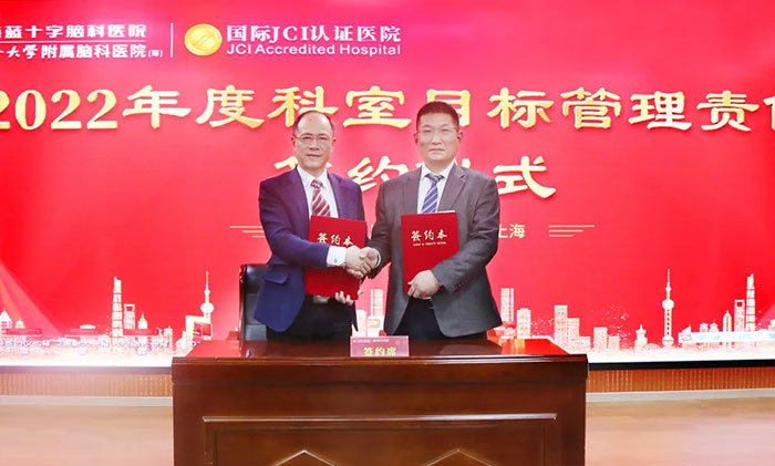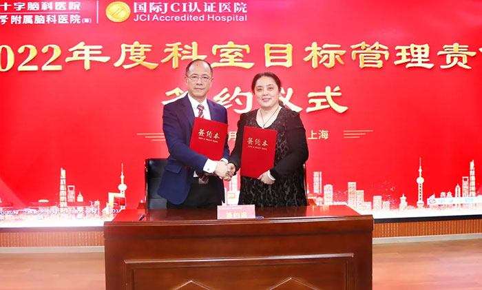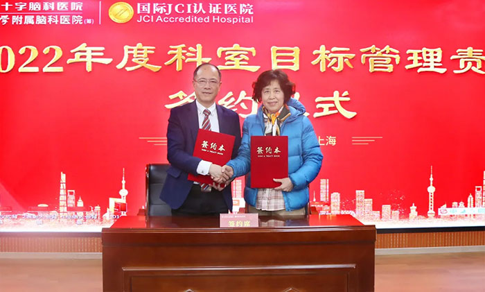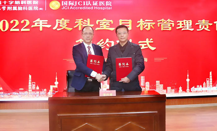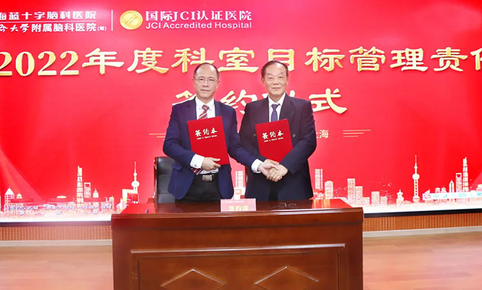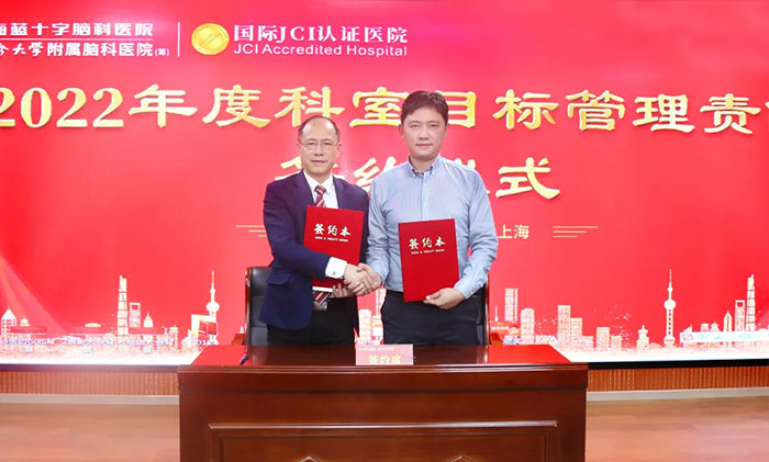 笃定新目标,奋勇开新局,努力实现高质量发展,1月24日,上海蓝十字脑科医院举行了2022年度科室目标管理责任签约仪式。总经理兼党支部书记朱敏、院长项耀钧等院领导班子全体、医院中层干部及业务骨干代表参加。