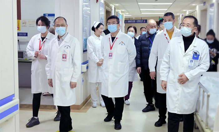 围绕医疗质量与安全、药品物资储备、医疗设备运行等重点工作,每到一处,院领导都详细听取科室负责人的工作汇报,全面了解科室运行情况。院领导叮嘱,务必做好节假日值守,针对急危重症患者加强管理并制定好相应预案,全力保障患者生命安全。
