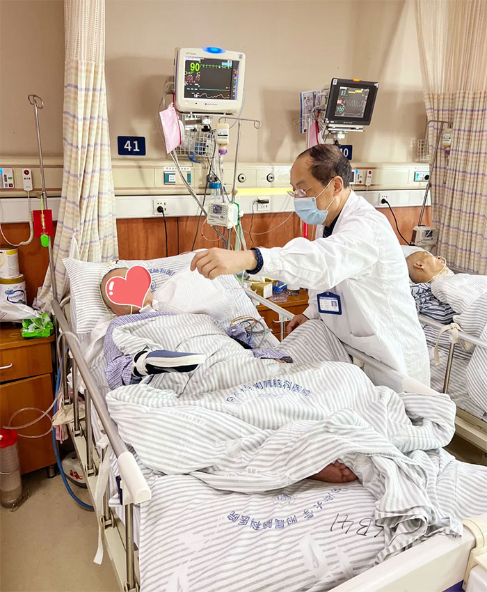神经外科6B病区,春节期间收治重症患者5人,其中一位脑干出血患者转神经外科重症监护病房。科室潘仁龙主任每天坚持查房,并密切关注脑干出血患者,改进治疗方案,使该患者病情逐步稳定。
