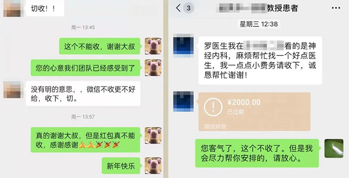 门诊、客服部的罗佳主任,春节期间共拒收患者微信红包2000元。