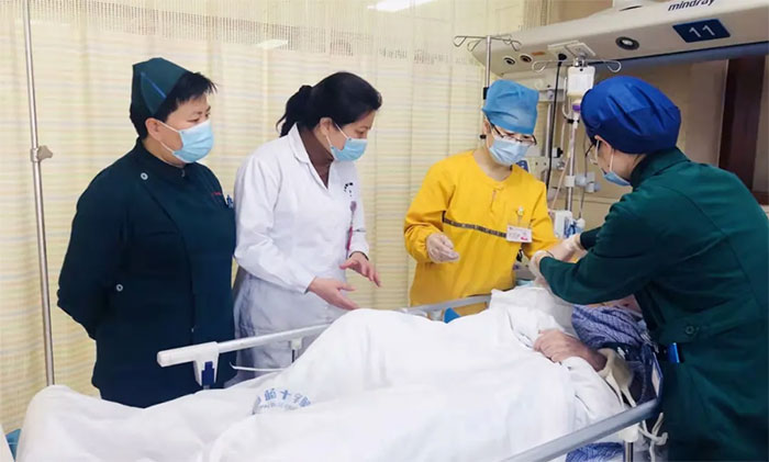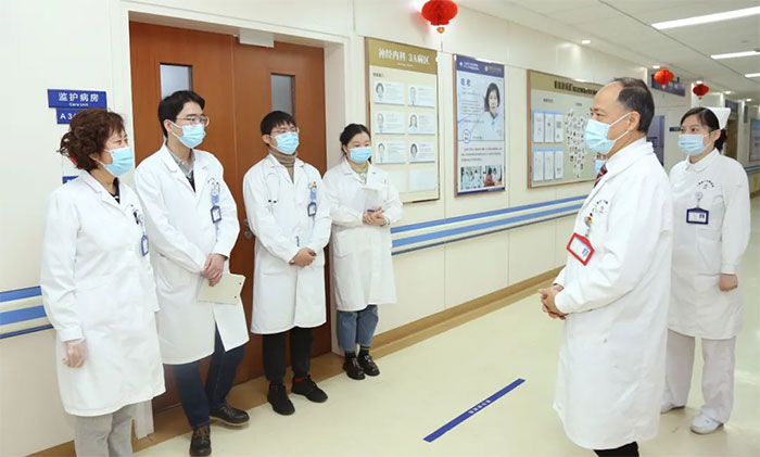 神经外科重症监护病区春节期间收治急危重症患者8人,医生查峰、徐亚辉、曹雨枫,护士长杨贝连续多日值班,尽心尽责救治患者,并做好与家属的沟通工作。