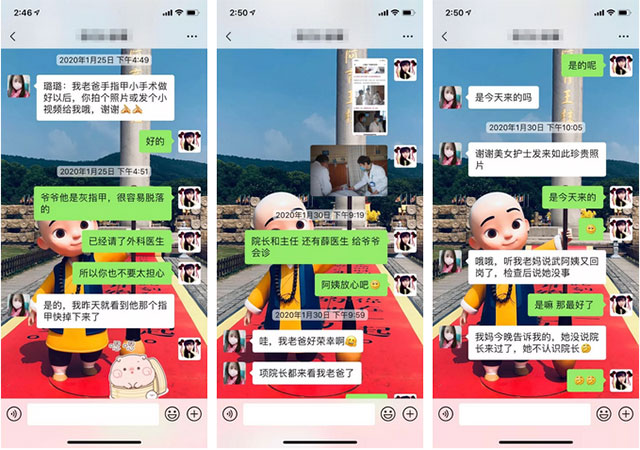 ▲ 王璐护士与家属保持密切沟通,当得知项院长来会诊后,家属表示感谢