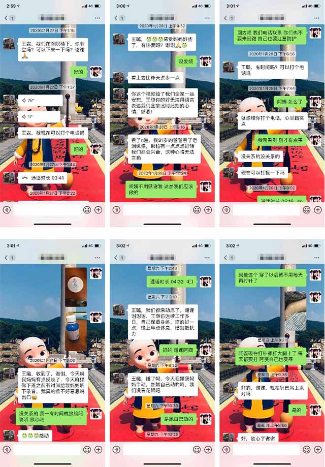 由于新型冠状病毒肺炎疫情,我们不能来院探望母亲,代护士长王璐除尽心照料母亲外,还每天给我们和母亲视频,每天告知母亲的病情况。面对病患家属总是一如既往的热情,她总是说“这是我们应该做的,有事随时找我”,并不厌其烦的回答我们要询问的情况,实在温暖人心。