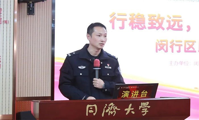 闵行区公安分局治安支队民警高智良作培训动员,结合国内近期伤医事件,对医院内部安检相关制度及工作机制等内容作推广介绍,强调医疗机构内部安全防范的重要性。闵行区公安分局治安支队内保科副科长姚建庆介绍了技防基础设备相关知识,结合具体案例生动阐释如何运用科学技术和设备提升技防水平、筑牢安全线。闵行区公安分局治安支队保安管理科副科长李寅杰从人防安保层面介绍了保安的历史变革及现状、安保人员招录资质问题等,并指出医院作为重点保卫单位,应通过专业规范的保安公司进行招录,建立、培养专业内部安保队伍。
