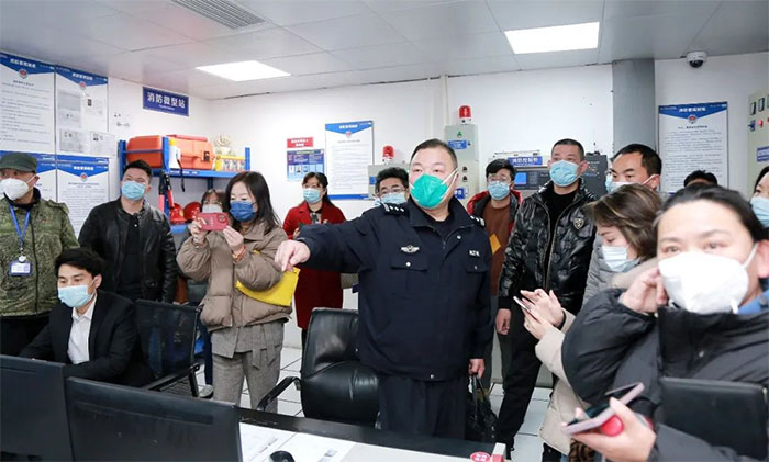 会后,在副总经理兼工会主席吴春芳的陪同下,参会人员实地观摩了医院消防控制室、微型消防站等重点场所。医院微型消防站站长陈伟智对消防站工作进行介绍。医院深入推进微型消防站标准化建设和管理,安全监控全覆盖、无死角,制度上墙、管理上心等方面工作令参会领导和同仁印象深刻,大家纷纷拿出手机进行拍摄、想要作为参考。