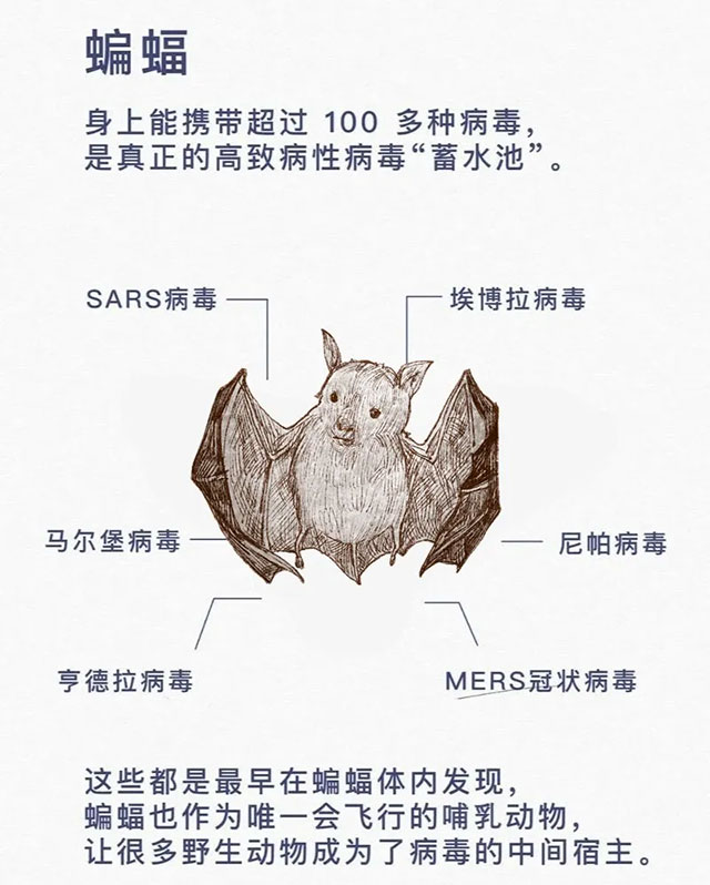 我作为唯一会飞行的哺乳动物,也让很多野生动物成为了病毒的中间宿主。