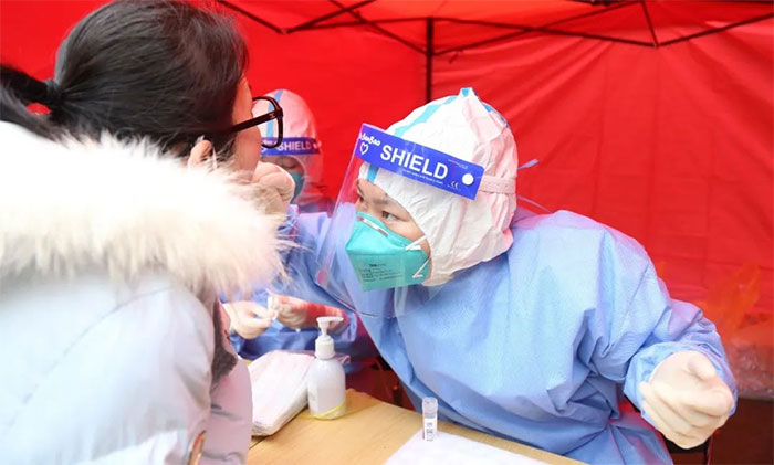 “我是党员,我先上”。党性的光辉,如一盏盏不灭的明灯,高悬在核酸采样的现场。顾不上吃饭喝水,顾不上揉一揉手脚的酸麻,脑子里唯一剩下的是——规范、标准、快速、采样……四五个小时不上厕所是常态,连续采样7、8个小时更是“稀松平常”。这一切只为了做到一条,“应检尽检,不漏一人”。