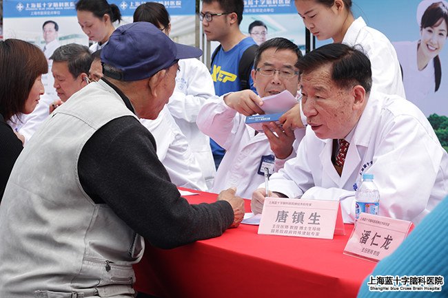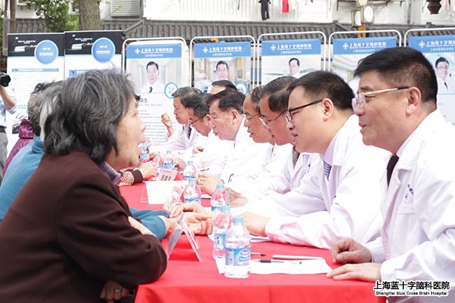 上午8时许,由上海蓝十字脑科医院副院长唐镇生、神经外科专家潘仁龙、神经内科权威专家李世平主任等众多专家组成的现场咨询客服团队携带听诊器、血压计等常用医疗器械,来到七宝老街,为社区市民免费测量血压,并指导疾病筛查、诊断以及预防、护理、康复训练方法等。