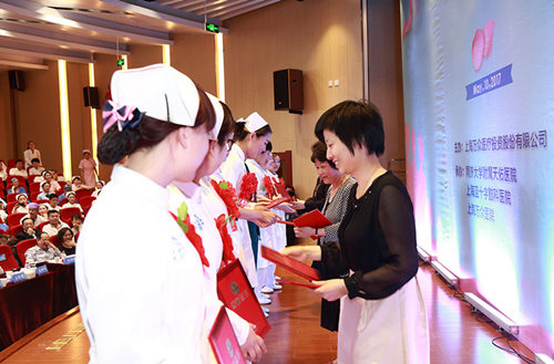 会议当天,数百名白衣天使欢聚一堂,共庆节日,致敬南丁格尔精神。大会分护士礼仪大赛和先进表彰两项议程,上海市护理学会理事长徐筱萍,上海市护理学会名誉理事长翁素贞,上海市卫计委办公室主任高秋韵,上海市护理学会副理事长、同济大学附属同济医院护理部许方蕾主任担任本次大会嘉宾暨护士礼仪大赛评委,并同公司总裁卓立强,副总裁孟垂祥、黄晓梅,副总裁兼护理总监叶文琴,副总裁兼上海蓝十字脑科医院院长项耀钧、党支部书记朱敏等一起为先进护理人员颁发了荣誉证书和奖状。