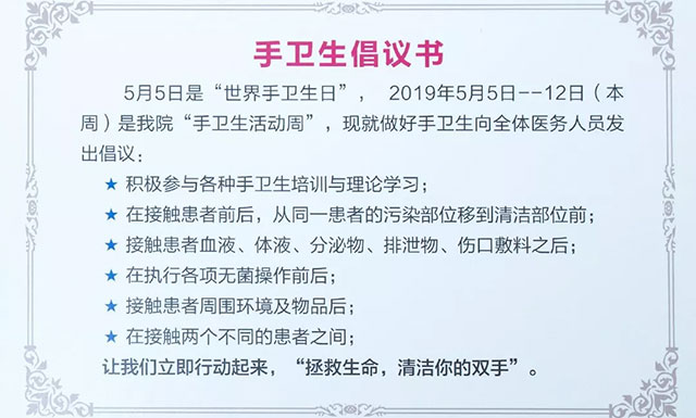 洗手,看起来是一件再平常不过的小事,却是事关健康的大事,手部清洁在卫生保健中起到重要作用。自2009年起,由世界卫生组织倡议发起每年5月5日是世界手卫生日,旨在强调医疗护理过程中提高医护人员手部卫生、减少医源性感染的重要性。今年世界手卫生日的主题为“所有人的清洁护理——就在你的手中”。