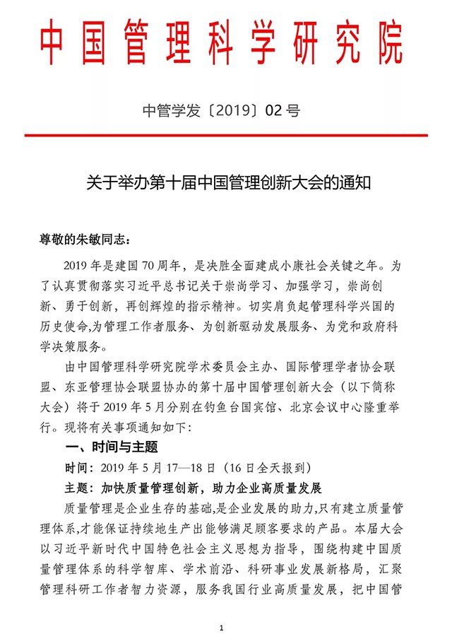 中国管理科学研究院(简称中管院)是由钱学森、钱三强、钱伟长等 200 多位高级科研人员发起的。中国管理创新大会创办于2001年,是我国管理科学领域最具影响力的盛会之一。会议当天,国家有关领导人、相关部委领导,国内外知名经济学家、管理学家、企业家共500人汇聚北京。十一届全国政协副主席白立忱宣布大会开幕,中国管理科学研究院副院长、学术委员会副主任蒋国华,十二届全国政协副秘书长、教科文卫体委员会副主任张秋俭、中国管理科学研究院常务副院长卢继传等领导出席致辞。