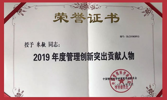 会议对近几年来行业管理创新实践方面产生的有代表性和影响力的个人进行颁奖,上海蓝十字脑科医院总经理兼党支部书记朱敏因理念创新、管理创新、技术创新、制度创新等成绩突出,荣膺“2019年度管理创新突出贡献人物”荣誉称号。