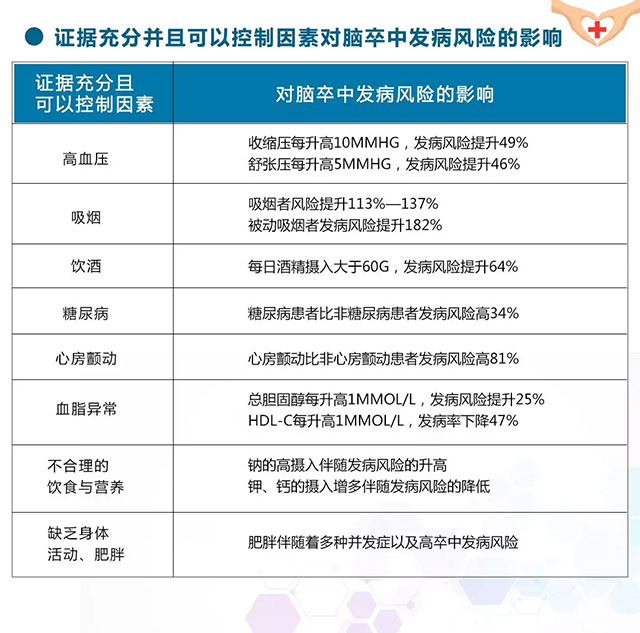 其中,在证据充分且可以控制因素中,每种因素对脑卒中的发病风险影响不同。