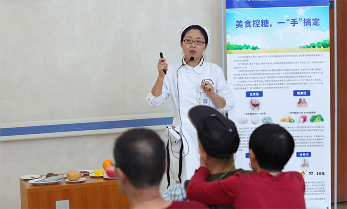 ▲ 马丽丽护士长为患者、家属等科普糖尿病科学饮食